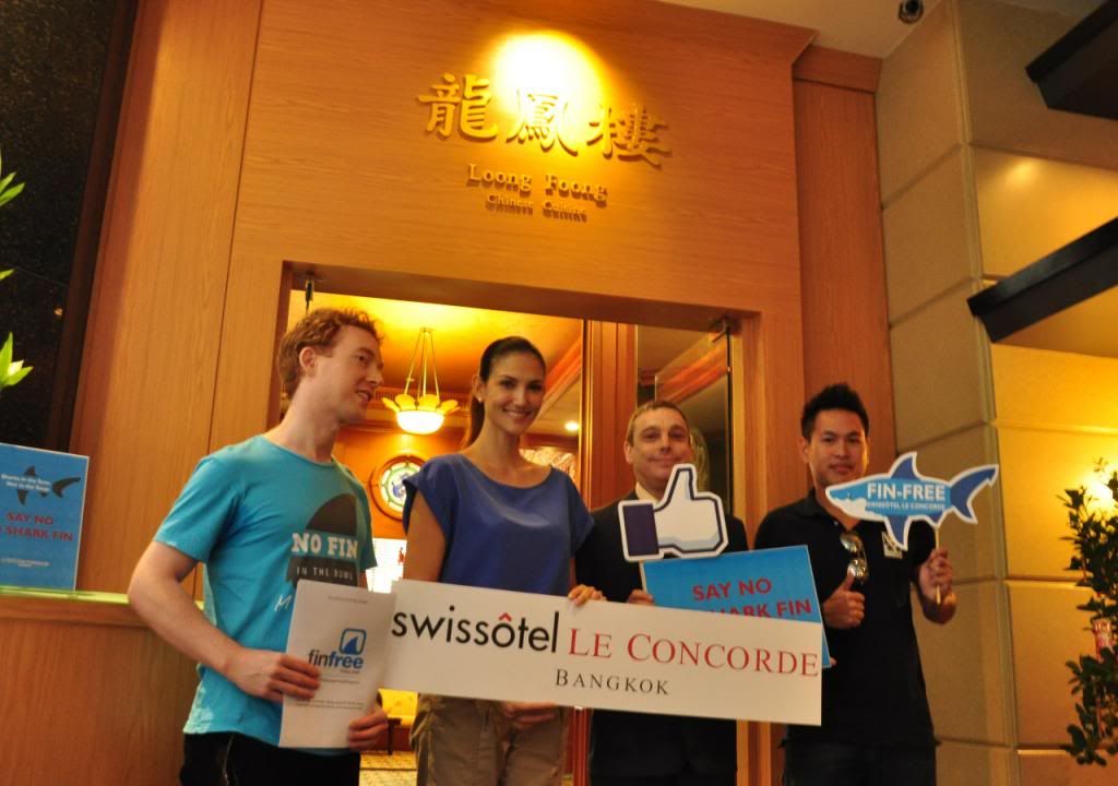 สโฮเต็ล เลอ คองคอร์ด ก็ตอบรับร่วมลงนามประกาศหยุดขายหูฉลาม คุณซินดี้พร้อมกับ กลุ่ม Fin Free Thailand ขณะนี้อยู่ระหว่างการเตรียมคลอดแคมเปญใหม่เพื่อเชิญชวนโรงแรม และร้านอาหารดังต่างๆให้เข้าร่วมโครงการ